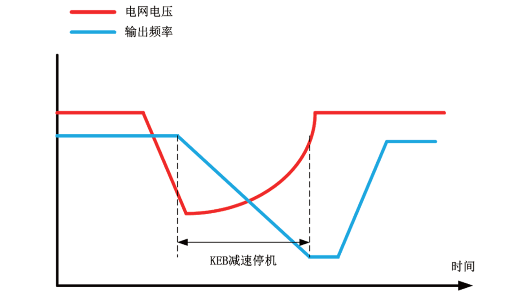 電網(wǎng)瞬間掉電時(shí),變頻器受控減速,減少因電網(wǎng)瞬間掉電,造成的生產(chǎn)中斷。