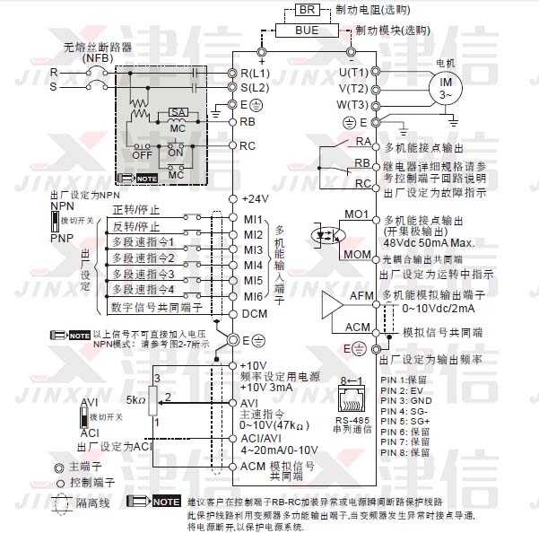八、臺(tái)達(dá)VFD-E變頻器接線注意事項(xiàng):
