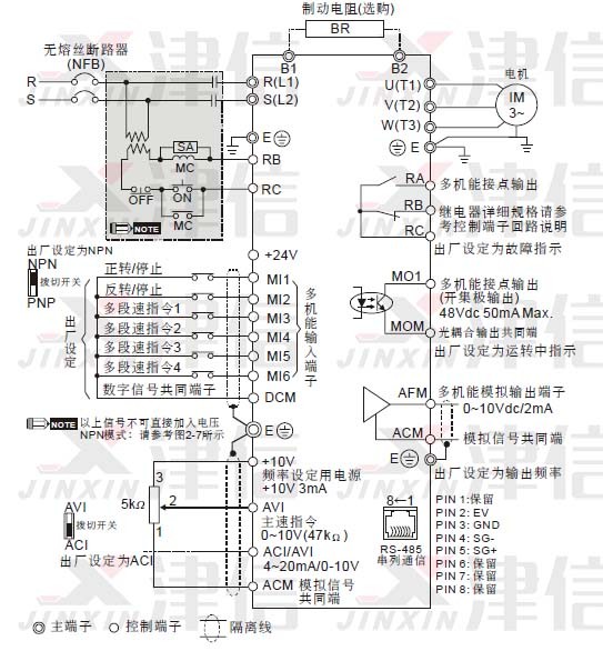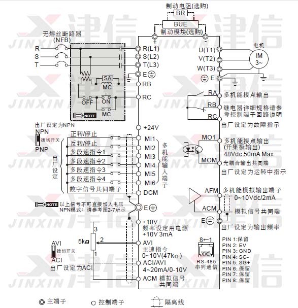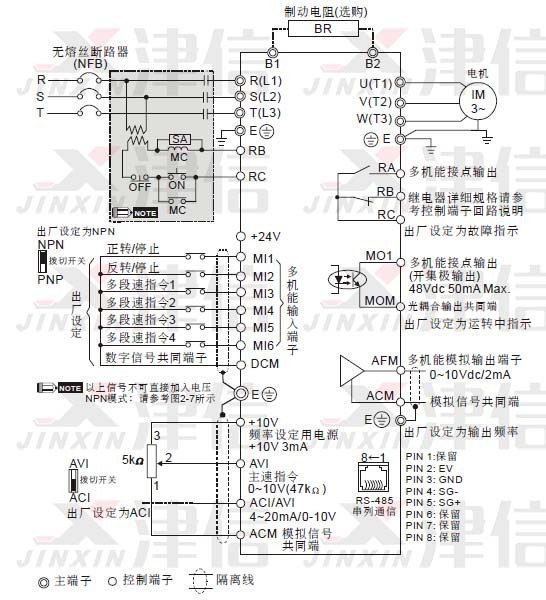 l 接地端子E 以第三種接地方式接地,460V 機(jī)種以特種接地方式接地。