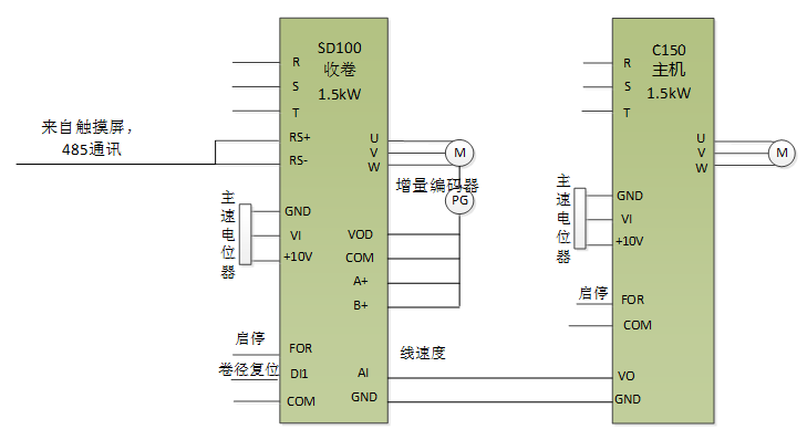 原收卷系統(tǒng)采用“變頻器+電機(jī)+磁粉+張力控制器”的模式,設(shè)備使用一段時間后需要對磁粉進(jìn)行維護(hù),且磁粉故障率較高,增加了廠家和客戶的故障點(diǎn)和維護(hù)成本;