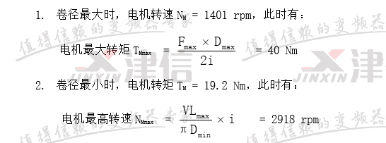 選擇異步伺服電機(jī)的方法:以滿足最大卷徑時(shí)的轉(zhuǎn)矩、轉(zhuǎn)速數(shù)據(jù)為電機(jī)額定數(shù)據(jù),選擇異步伺服電機(jī)。