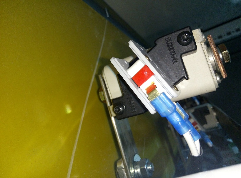 檢查完最左邊模組后并未發(fā)現(xiàn)問(wèn)題,將剩余模組全部檢查完畢,均正常。通過(guò)觀察發(fā)現(xiàn)直流母排上最左端模組連接快熔微動(dòng)開關(guān)動(dòng)作。